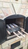 Barbecue ,grillező ,nyárson sütő ,peka edény, samott tégla béleléssel takaréktűzhellyel kombinálva .
