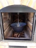 függesztett láncos forgatós bográcsozásra, tárcsázásra.A csendesen izzó parazsat a peka edény kupola részére lapátoljuk így a benne lévő húsok a peka edény tartalma egyenletesen átsül.A kiegészítő elemként megépült takaréktűzhelyen,rakott tűzhelyen,népiesen falmasinán szintén süthetünk főzhetünk jó szolgálatot tesz,kevés fával üzemel gazdaságosan működtethető.